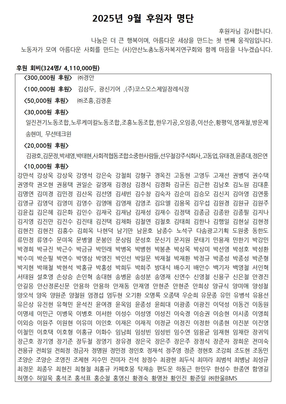 후원계좌. 우리은행 1005-104-269010 (예금주. 사단법인 안산노총노동자복지연구회)